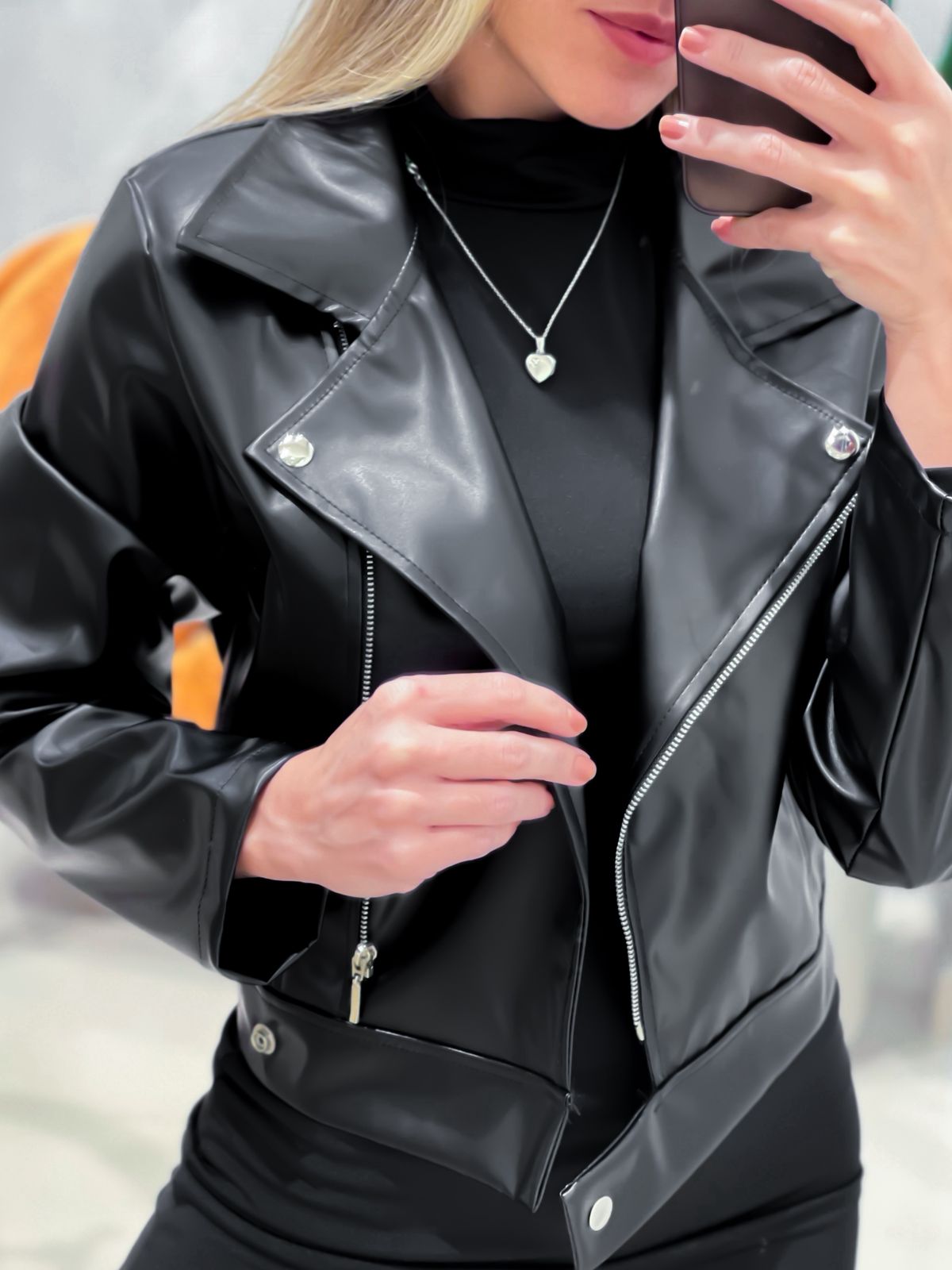 Jaqueta em Courino com Lapela e Botão Sara Ref. 1536
