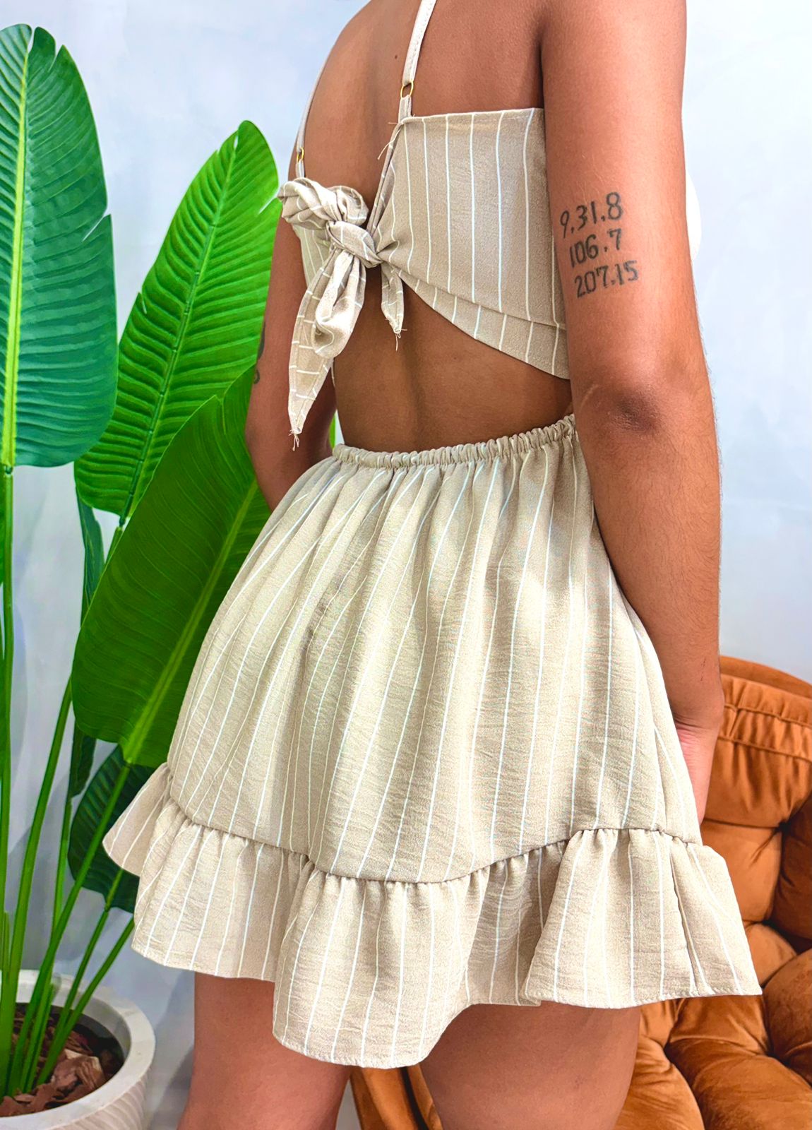 Macaquinho Vestido em Crepe de Alça com Amarração e Babado Edlaine Ref. 1862